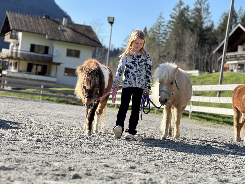 So wird der Urlaub für alle zum Erlebnis: Eltern genießen ihre Auszeit in den Bergen, während die Kinder bei den Minipferden spielen, lachen und ganz nebenbei lernen, wie man die kleinen Tiere richtig pflegt.