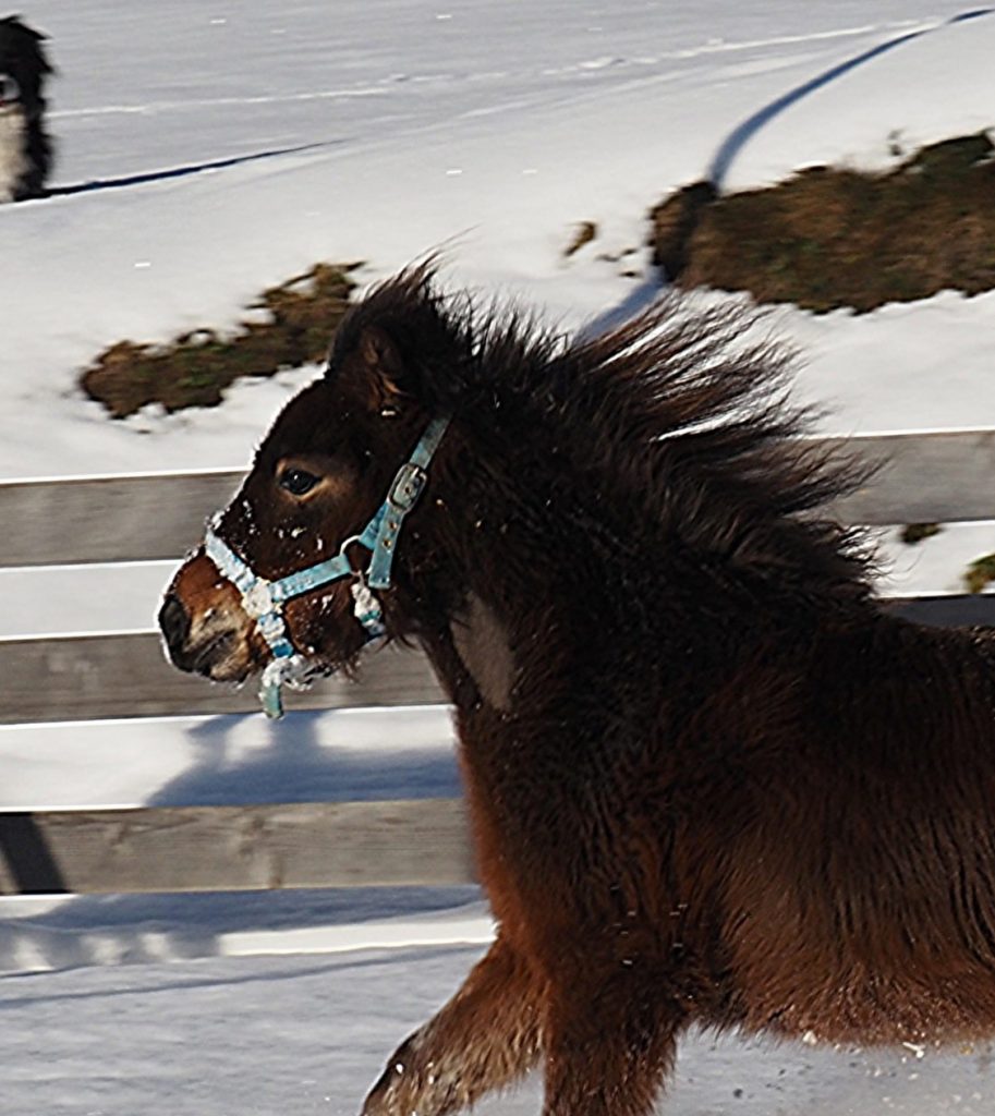 Hedwig ist die ranghöchste Miniaturepferd Stute in unserer Herde. Ihre Rolle erfüllt sie ruhig, souverän und immer freundlich. Ohne Hektik sorgt sie für Ordnung und gibt den anderen Sicherheit – ganz selbstverständlich und fair.