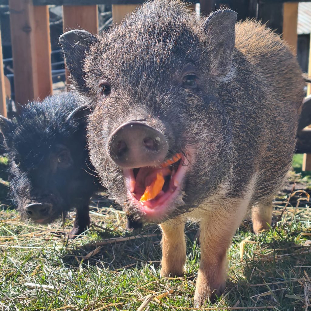 Auf unserem Minihof leben auch zwei süße Minischweine. Mit ihren kleinen Nasen und ihrer neugierigen Art sorgen sie immer wieder für ein Lächeln bei unseren Besuchern. Sie lieben es, im Stroh zu wühlen, den Hof zu erkunden und alles ganz genau zu beobachten.